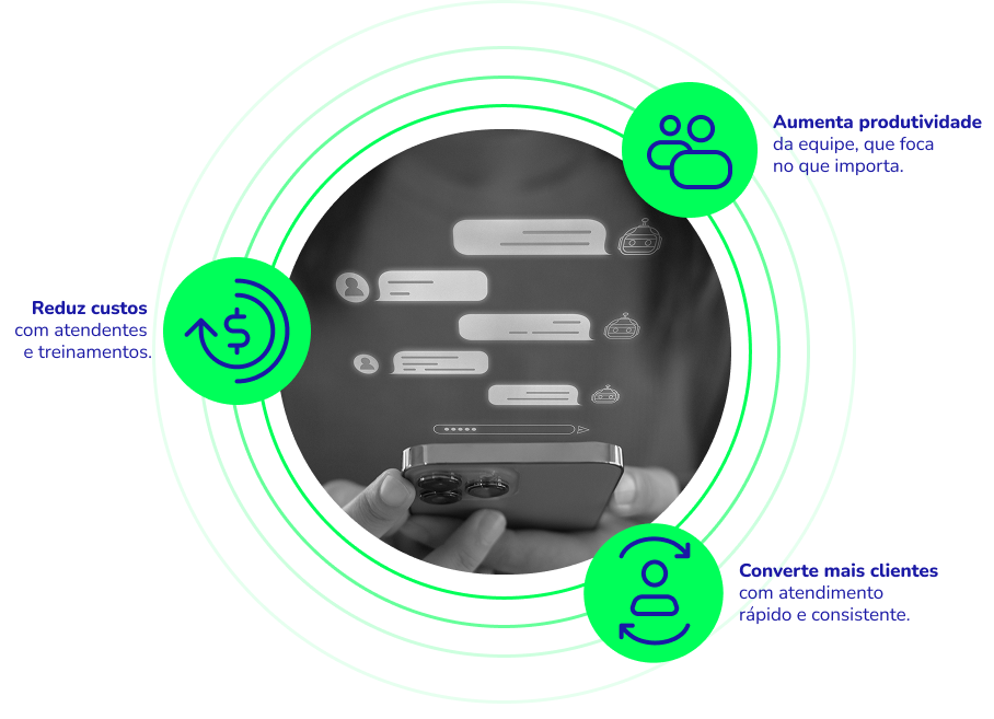 Diferente dos bots tradicionais, a Bluen entende contexto e responde de forma natural, mantendo o tom de voz da sua marca.