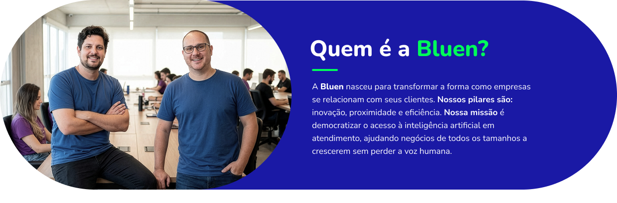 Suporte especializado: equipe Bluen pronta para otimizar seu agente.